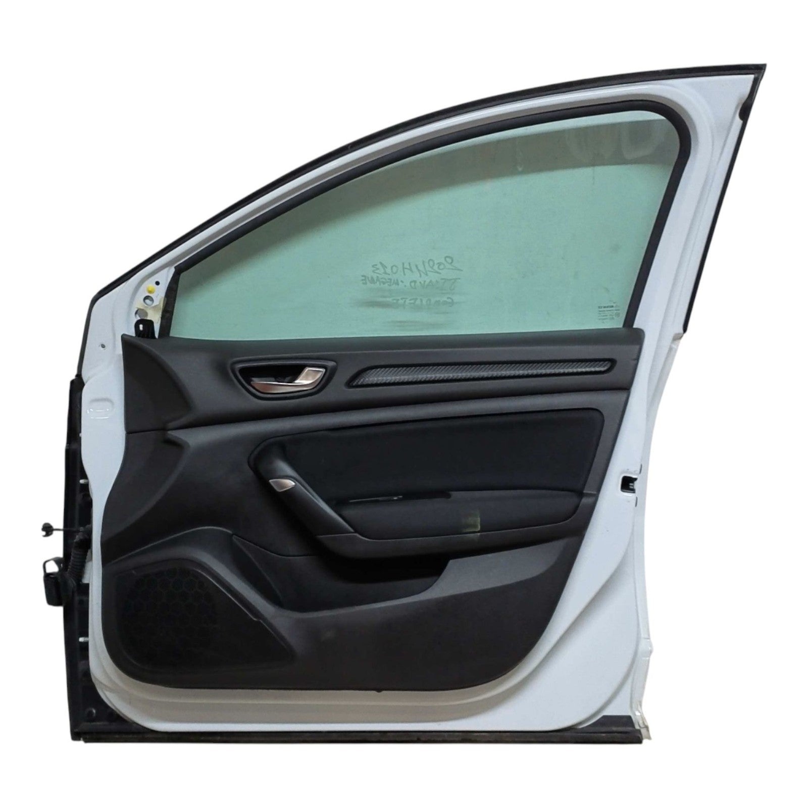 Porte avant droite d'occasion. Vérifiez la compatibilité grâce aux informations ci-dessous. - Couleur : Blanc - Code OE : 801001148R - Poignée peinte + chrome - Faisceau + serrure - Lève vitre électrique - Légères rayures - Garniture Pièce en bon état visuel |