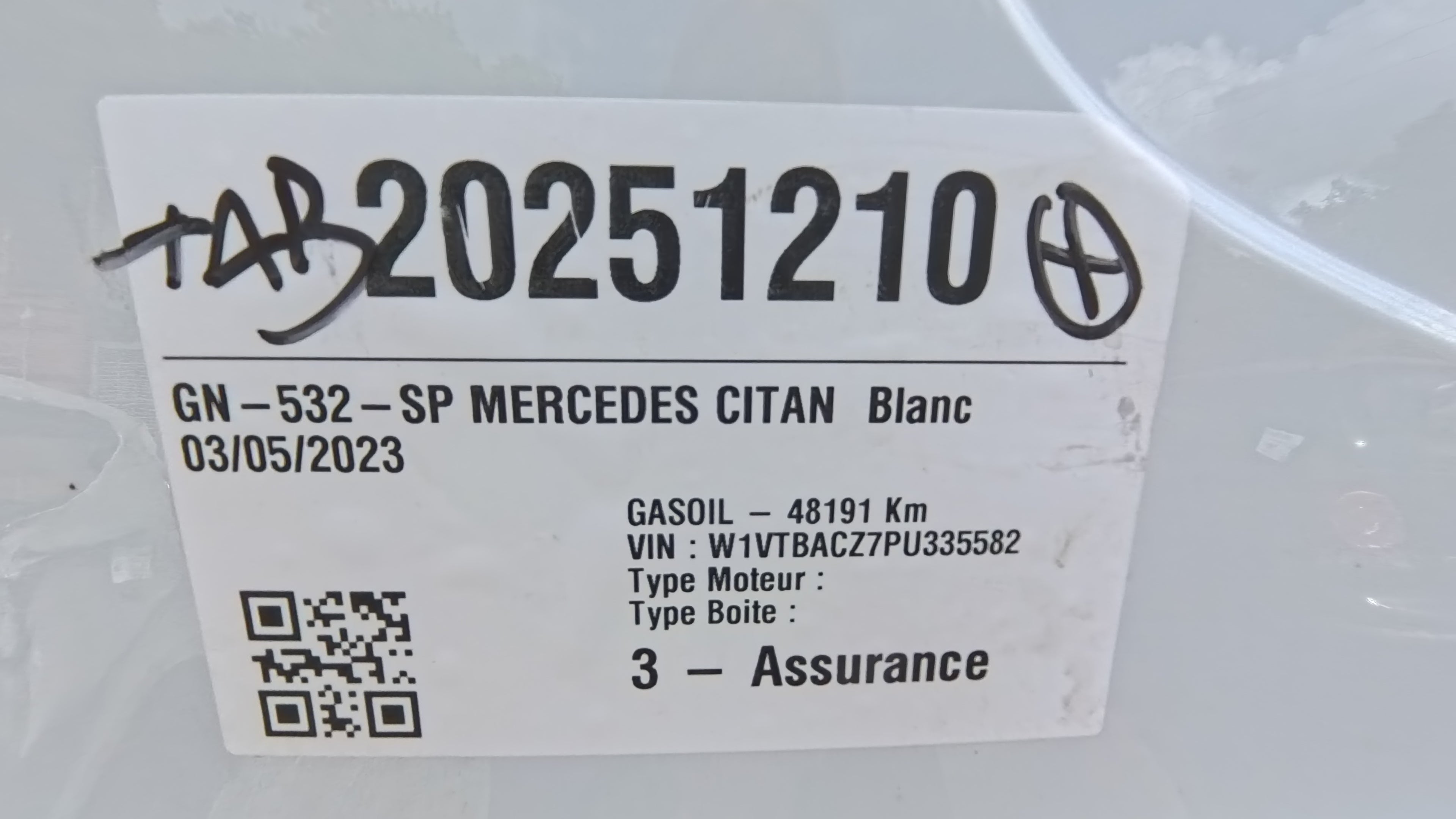 N° de série : W1VTBACZ7PU335582