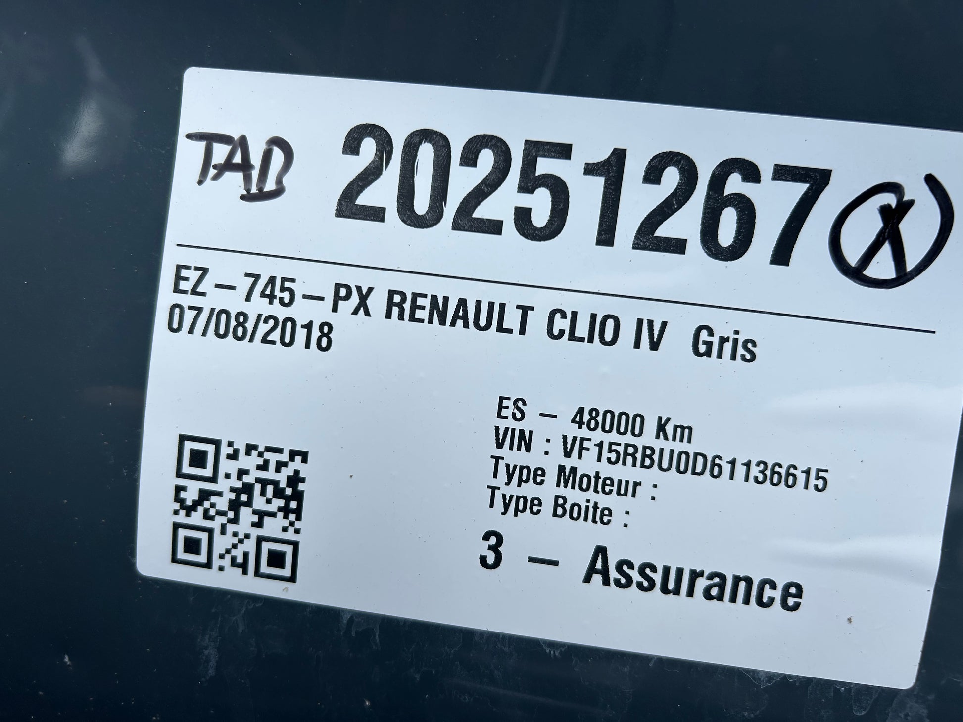 Carte grise : ?